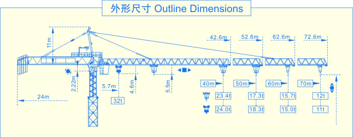 SCM-M900(32t)米兰(中国),是我公司吸收国外塔机技术,自行设计制造的大型上回转自升式米兰(中国)。该机型设计新颖,起升、回转、变幅、行走、顶升等机构均采用国外技术,性能先进可靠。 该机具有轨道行走式、固定附着式,多种使用类型。变幅有单小车和双小车两种,单小车情况下最大起重量32t,端部吊重11t;双小车情况下最大起重量32t,端部吊重12t。